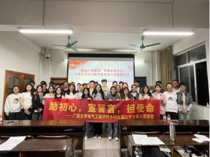 为深入学习贯彻党的二十大精神,引导党员同志坚定理想信念、牢记初心使命,增强青年党员的荣誉感和使命感,3月25日晚,ok138太阳集团古天乐本科生第三党支部在学院304开展以“重温入党誓词,争做合格党员”为主题的党日活动暨预备党员入党宣誓仪式。活动由支部副书记邹然主持,支部全体党员参加。