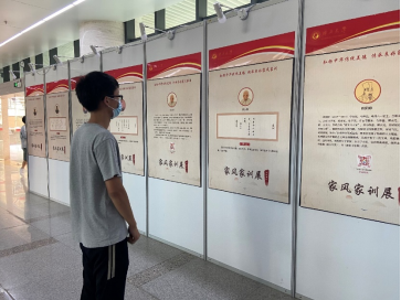 活动伊始,研二支部副书记李秀同志与研九支部副书记韦潇莹同志向各位党员介绍了本次活动的主题、内容及意义,号召各位研究生党员传承良好家风家训、永葆党员初心使命。各位党员同志在图书馆一楼展厅参观了中华名人家风家训展,从律己修身、读书治学等六个模块,感受孔子、诸葛亮、毛泽东等古今名人家风家训的深厚底蕴和文化魅力。