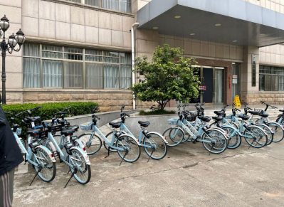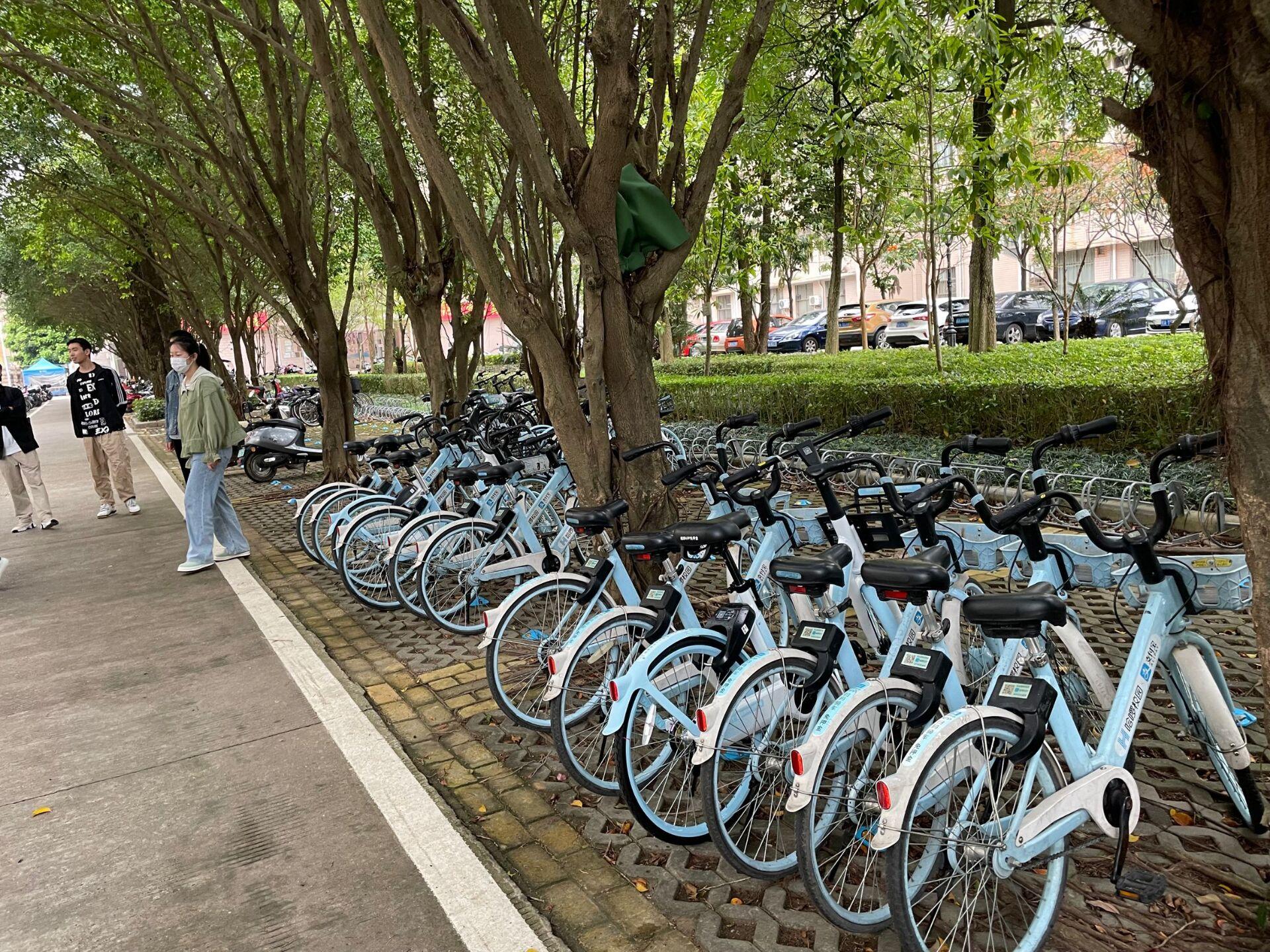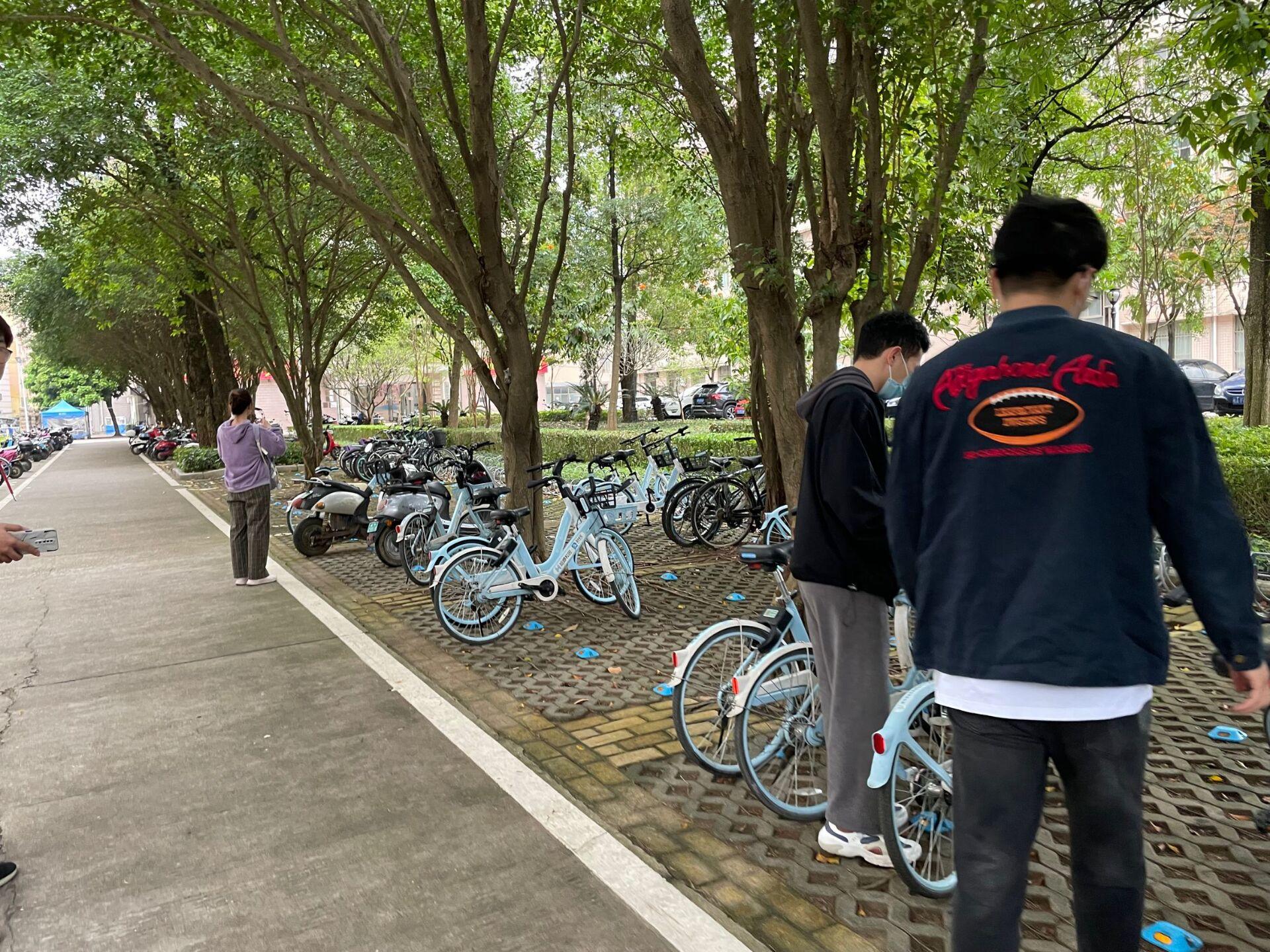 整理后的共享单车既整齐美观,又方便了老师同学们的使用。
