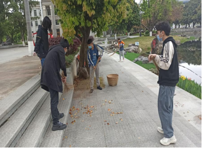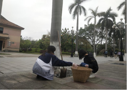 最近刚下了一场雨,道路上铺满了落叶,道路旁的草坪暗藏着各种零碎的白色垃圾、烟头。本一支部第二、第三党小组的党员同志们拿着扫帚和箩筐,认真清理杂物,没有一个叫苦叫累。大家也热情高涨地不放过任何一个角落,每个人都尽自己的微薄之力搜刮着垃圾,大家齐心协力把校园环境打扫干净,最后,我们将拾捡的垃圾一一扔进垃圾桶。