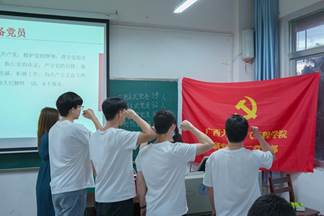 大会前期,发展对象师灿辉,莫宇鸿,康田雨,陈新,罗雪丽同志分别汇报了发展对象期间的思想、学习、工作情况,并决心扬长治短,坚定不移地向党组织靠拢,为共产主义事业贡献力量。五位同志均全票通过表决。在袁榕基同志的带领下,他们向党旗庄严宣誓后转为预备党员。