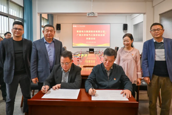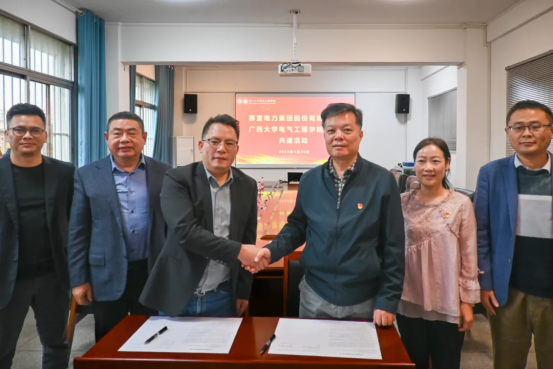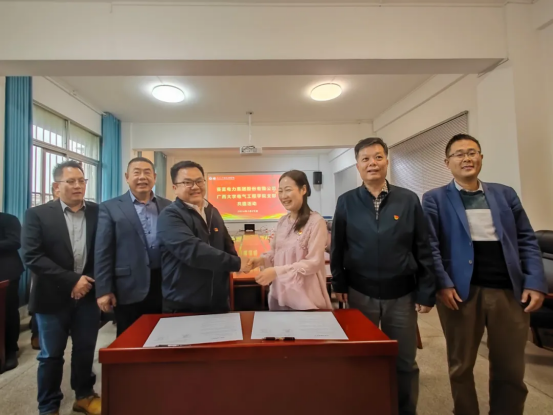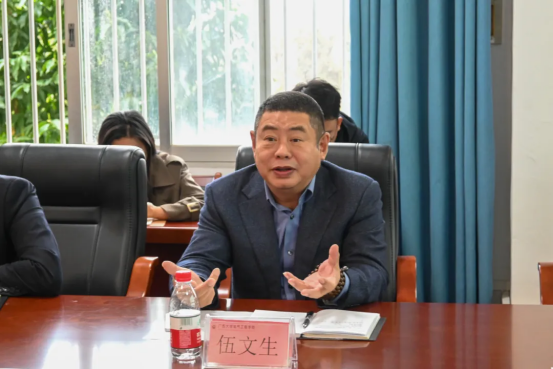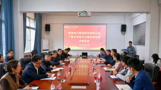 为推动产学研协同创新,实现校企携手共进、共同高质量发展的新格局,3月20日下午,赛富电力集团股份有限公司董事长伍文生、总经理梁树乐和副总经理韦仕贤等一行应邀到我院开展支部共建和校企合作交流座谈活动。我院党委书记梁志坚,党委委员、电气党支部书记陈碧云以及电气党支部的教师党员参加本次活动,梁志坚书记主持会议。